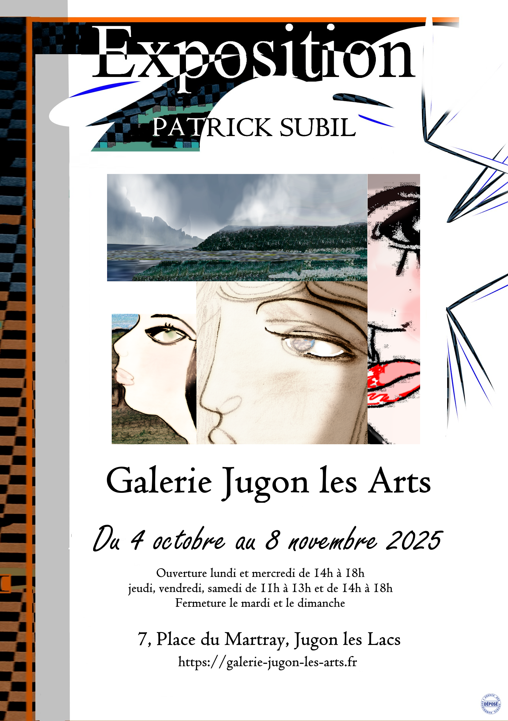 L’exposition solo de Patrick SUBIL est visible du 4 octobre au 8 novembre 2025 à la Galerie Jugon les Arts.