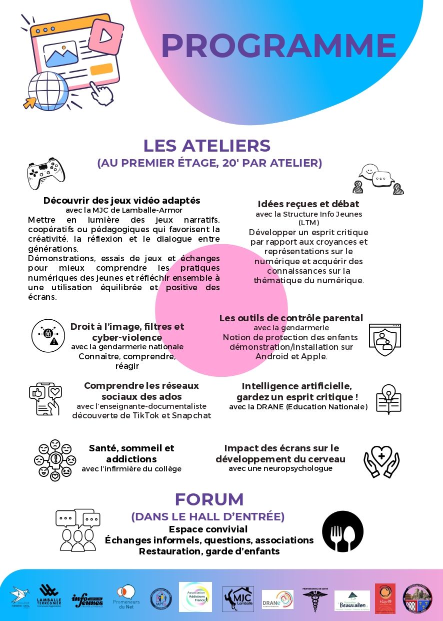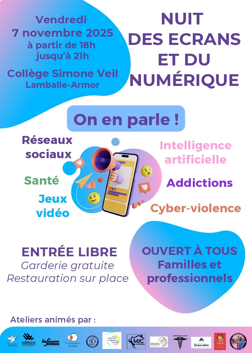 Une soirée gratuite ouverte à tous : familles, enfants/adolescents et professionnels a lieu le vendredi 7 novembre 2025 au collège Simone Veil de Lamballe-Armor à partir de 18h jusque 21h.